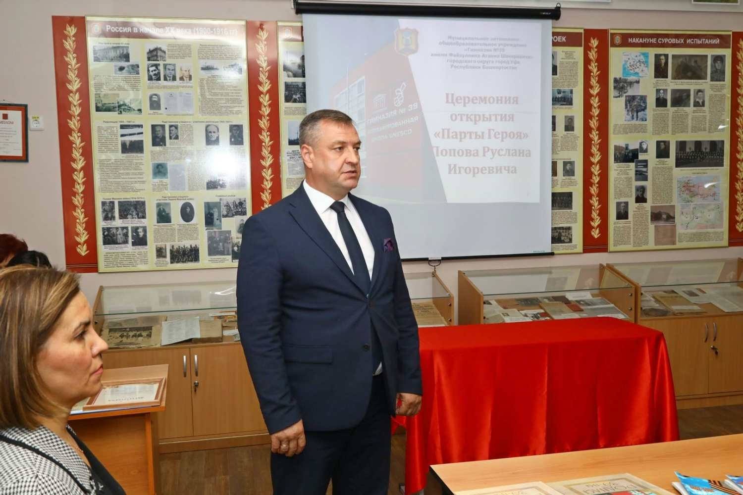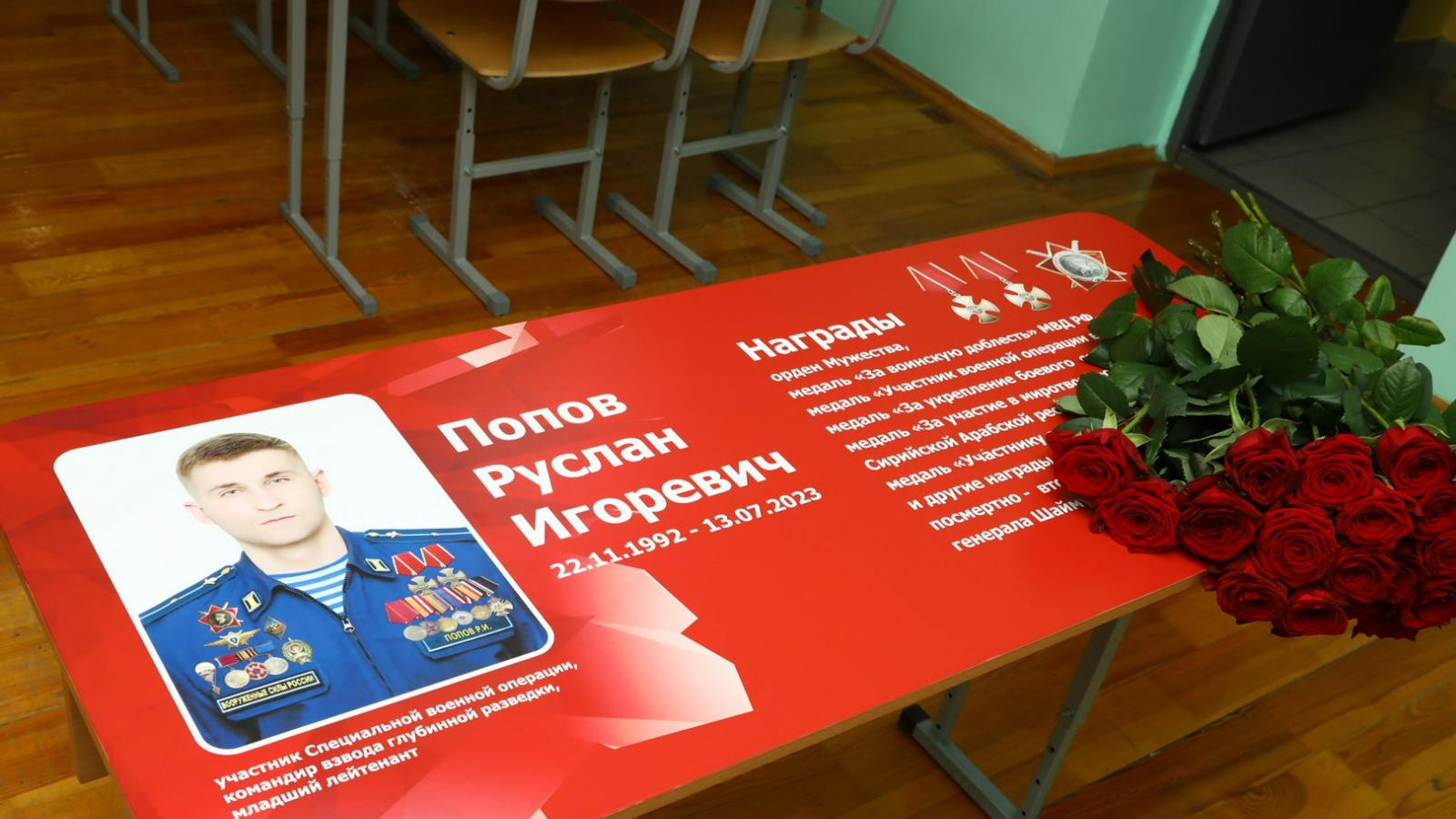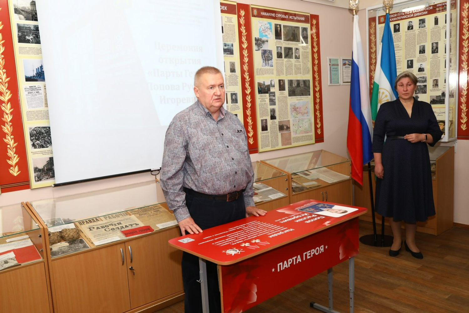 Сегодня, 6 сентября, в гимназии №39 в Уфе открыли «Парту Героя» Руслану Попову. После его героической гибели в зоне СВО на территории Украины педагогический коллектив образовательного учреждения решил увековечить имя своего выпускника. Церемония прошла в школьном музее Славы. Там хранятся истории участников Великой Отечественной войны, родственников учащихся гимназии. Теперь появился раздел, посвященный Руслану Попову.