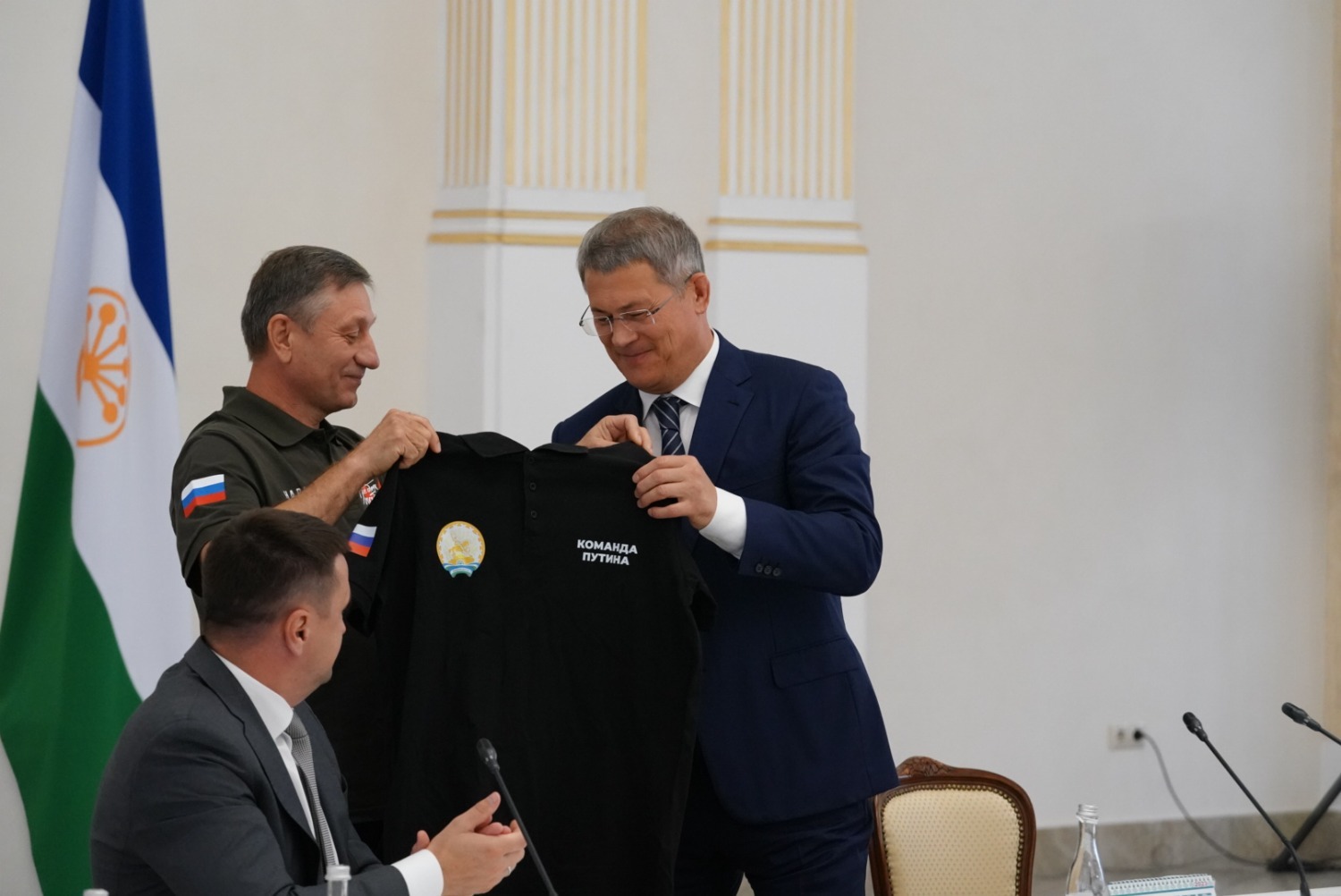Руководитель регионального исполкома также подарил Радию Хабирову именную футболку Народного фронта.