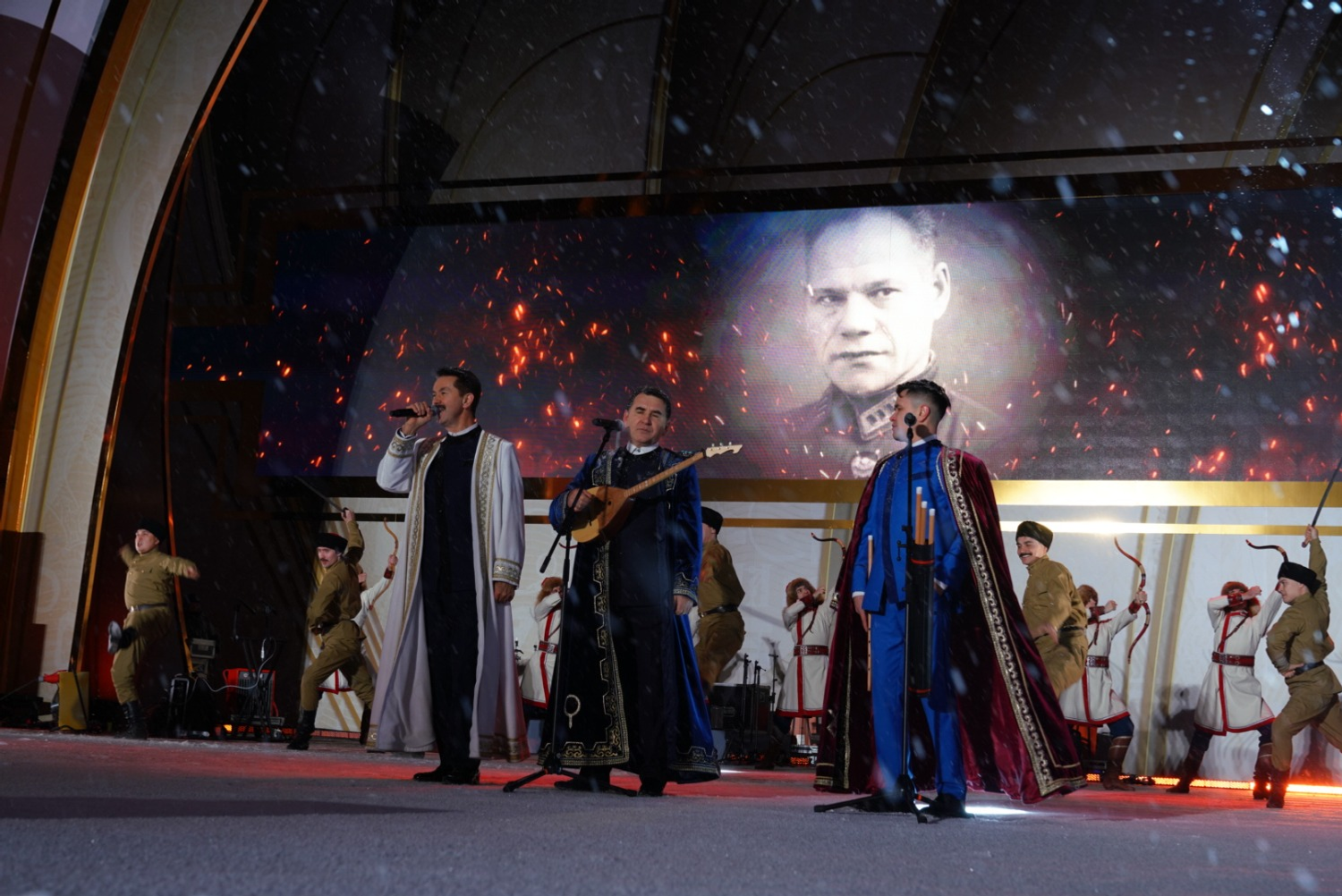 Патриотическая тематика концерта «Время героев» выбрана не случайно. 4 года назад, 3 декабря 2019 года, Глава Республики Башкортостан Радий Хабиров учредил орден генерала Минигали Шаймуратова — Героя России, прославленного командира 112-й Башкирской кавалерийской дивизии. Соединение участвовало в Великой Отечественной войне и принимало активное участие в обороне Москвы. Сегодня имя Минигали Шаймуратова носит добровольческий батальон в составе мотострелкового полка «Башкортостан», который выполняет боевые задачи в рамках специальной военной операции.