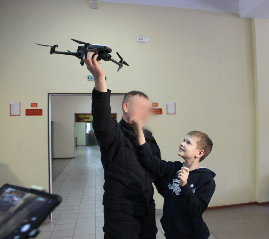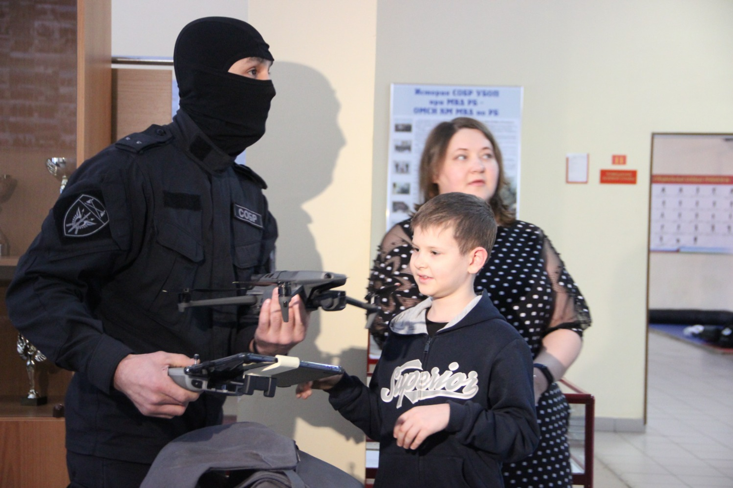 Мальчишки есть мальчишки. Конечно же, бойцы показали Коле стенд со снайперскими винтовками, автоматическим оружием и штатными пистолетами. Кроме того, Коля и Ульяна посмотрели обмундирование и усиленные костюмы росгвардейцев. Но особенно дети заинтересовались полётом квадрокоптера. Спецтехника летала под потолком, а мальчик и девочка наблюдали на экране оператора за улыбающейся им мамой.