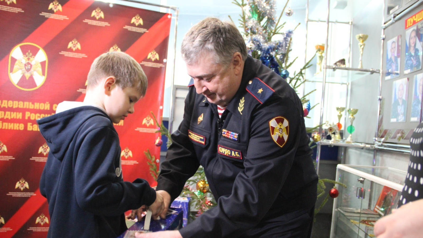 После просмотра спектакля детей ждал самый волнительный момент — вручение долгожданных подарков. Они ждали Колю и, конечно же, его сестру в управлении ведомства. Брата и сестру с их мамой встретил начальник Управления Федеральной службы войск национальной гвардии Российской Федерации по Республике Башкортостан генерал-майор полиции Александр Бурдо. Александр Борисович поздравил Колю, Ульяну и их маму Галину с наступающим Новым годом, пожелал им крепкого здоровья, благополучия и счастья.