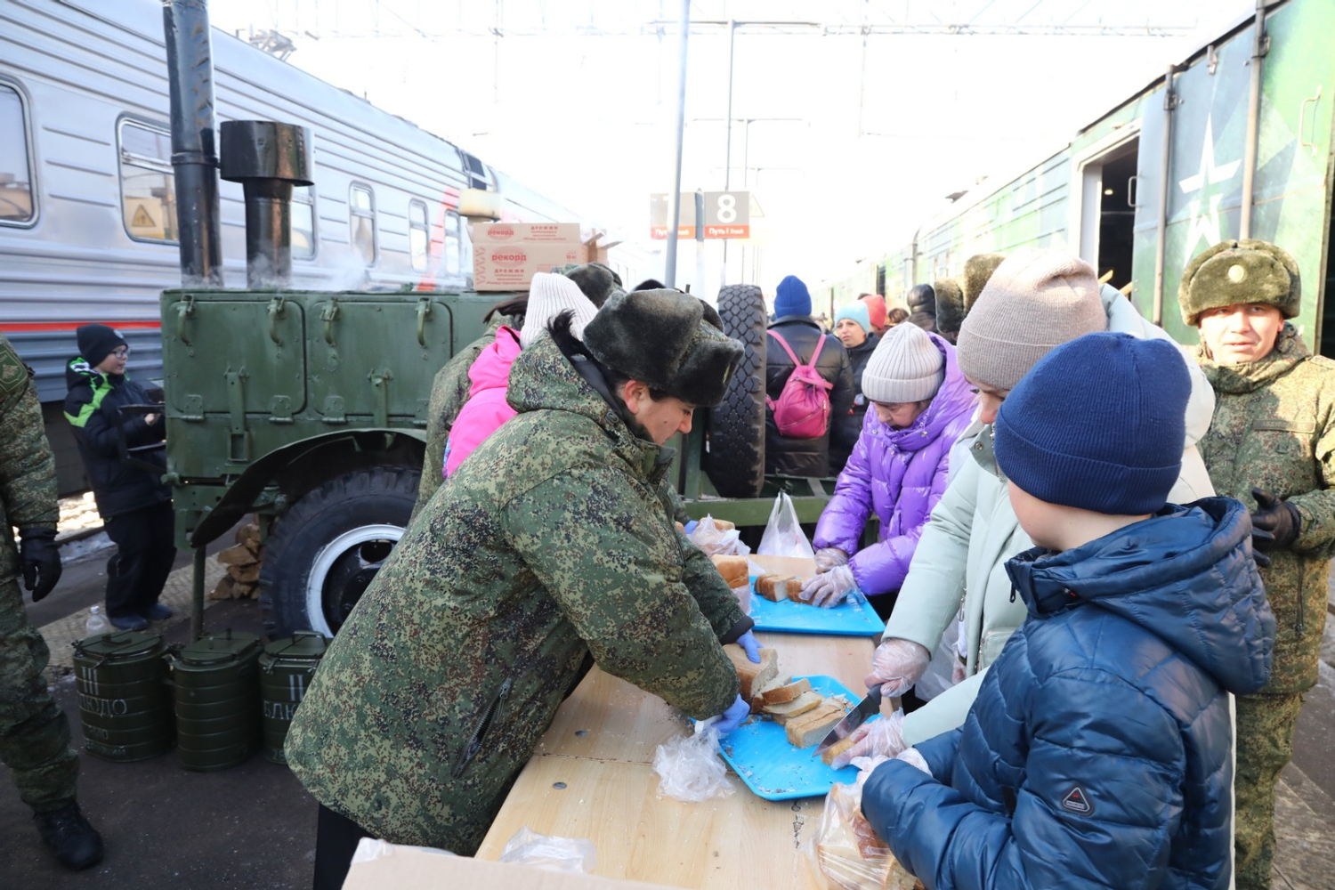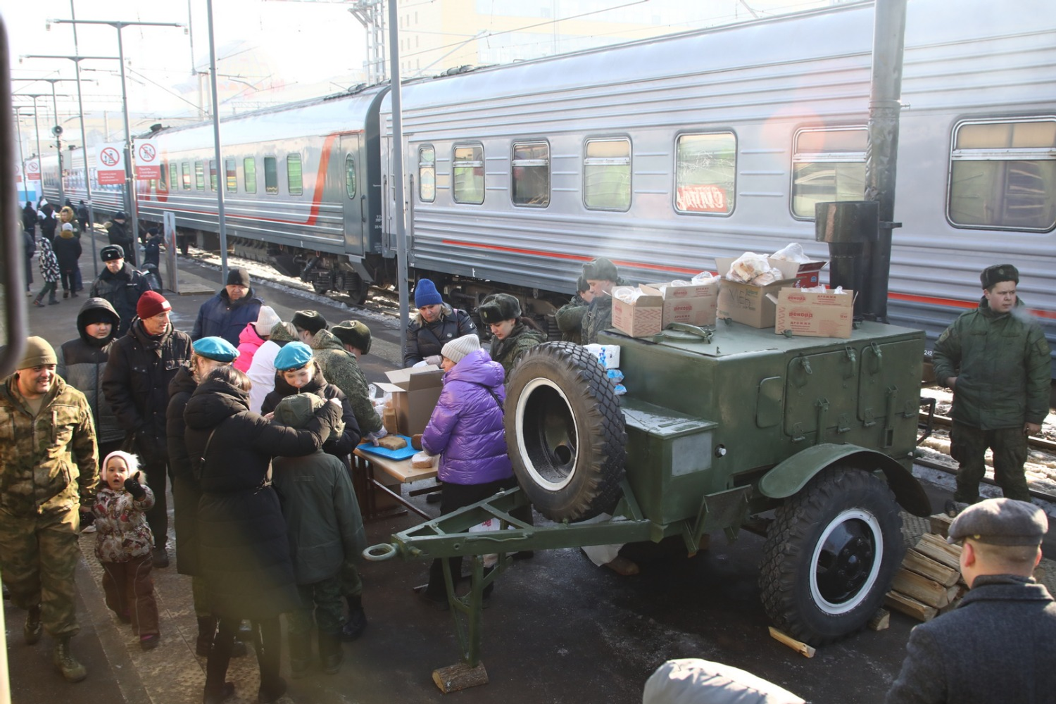 В этот день на вокзале проходит и акция «Военная служба по контракту — выбор сильных!». Все желающие могут посетить развернутый на территории ж/д-вокзала пункт отбора, ознакомиться с доступными должностями различных войск и пройти профессионально-психологический отбор.