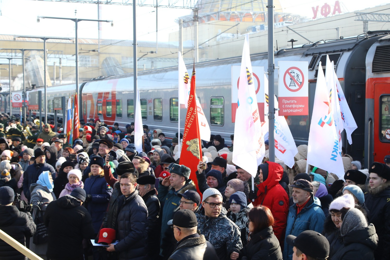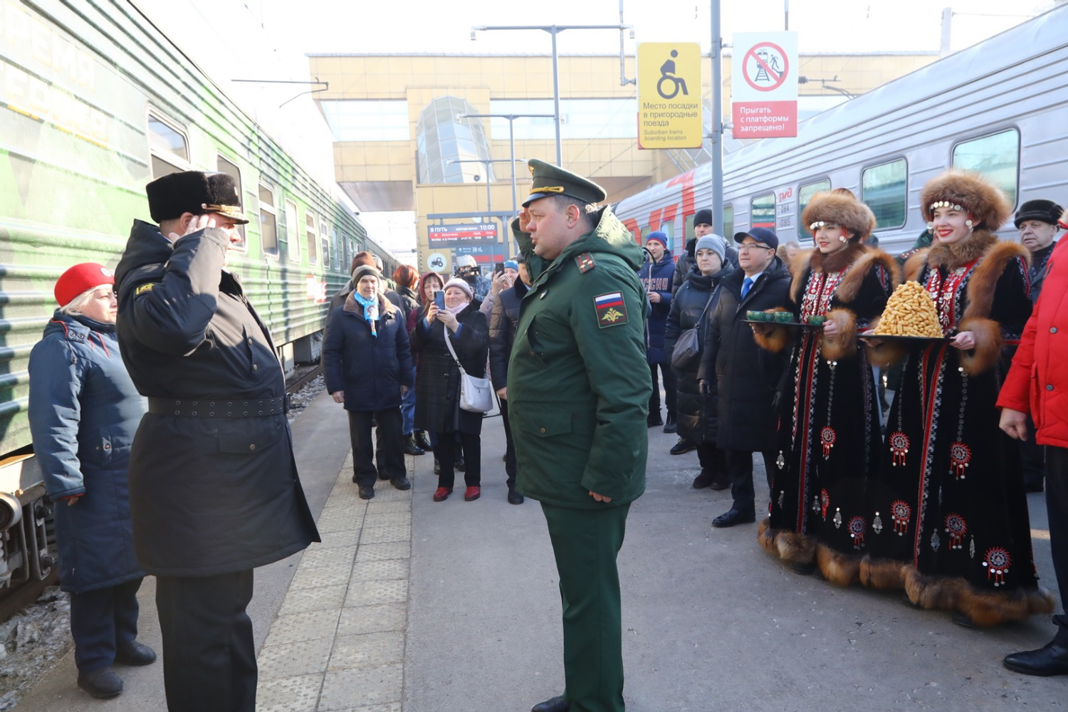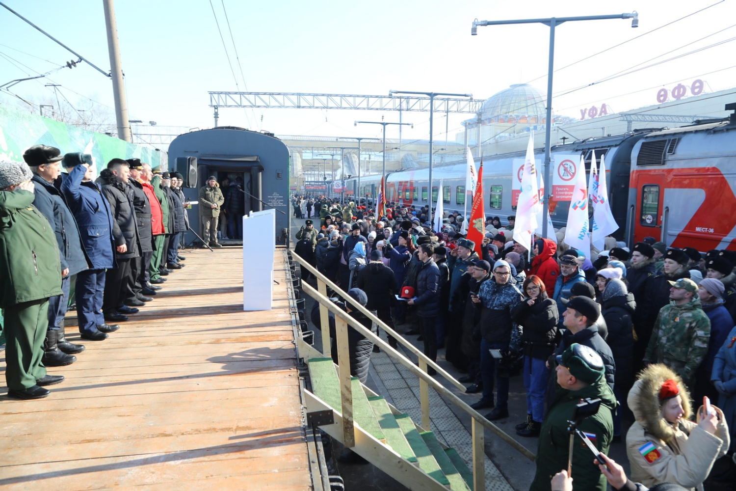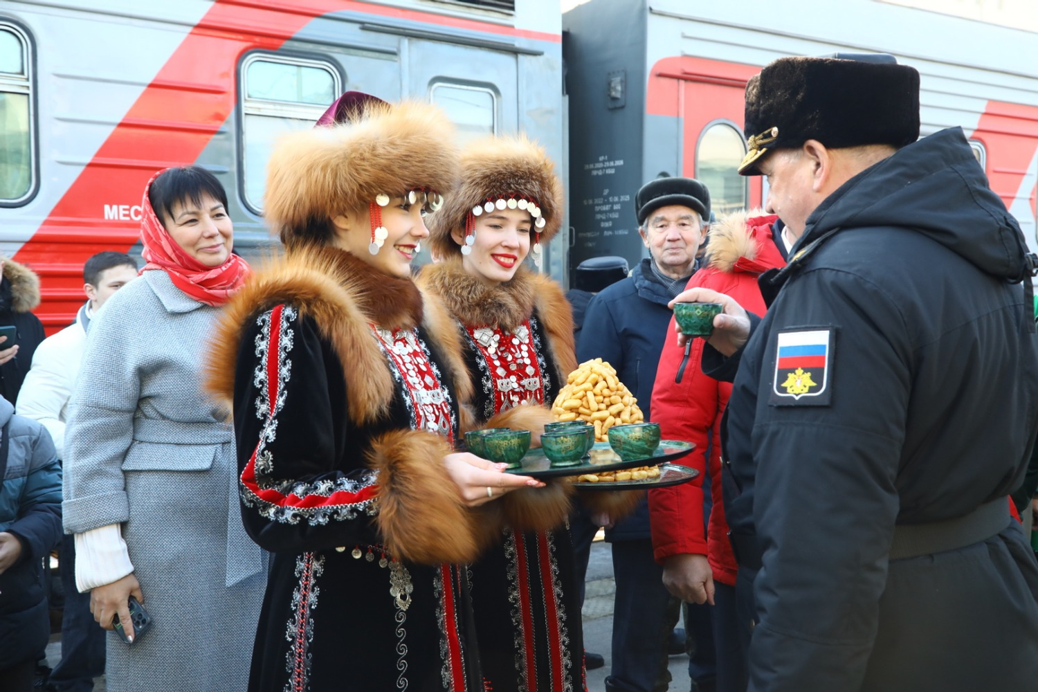 Эшелон с башкирским гостеприимством встречали башкирские девушки в национальных костюмах с чак-чаком. На торжественный митинг по поводу открытия акции собрались военнослужащие, офицеры, кадеты, юнармейцы, жители и гости башкирской столицы.