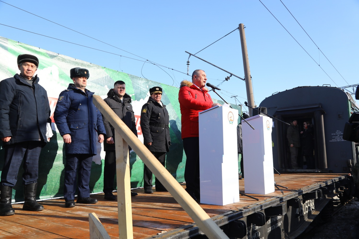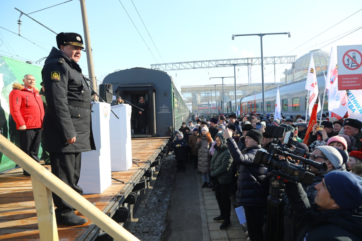 - Мы искренне рады приветствовать на нашей прекрасной земле такую агитационную акцию, которая уже не в первый раз проводится министерством обороны и уже стала приятной для нас традицией. Уверен, что в следующем году будет не менее интересная акция. Мы знаем, что слова правда и победа всегда находятся рядом друг с другом. Мы прекрасно знаем, что правда на нашей стороне. Если кто-то еще в этом не определился, эти прекрасные тематические вагоны помогут разобраться и понять это. А победа всегда на стороне тех, за кем правда. Уверен, что скоро мы встретим нашу долгожданную победу! - сказал начальник Уфимского территориального гарнизона РБ, военный комиссар РБ полковник Михаил Блажевич.