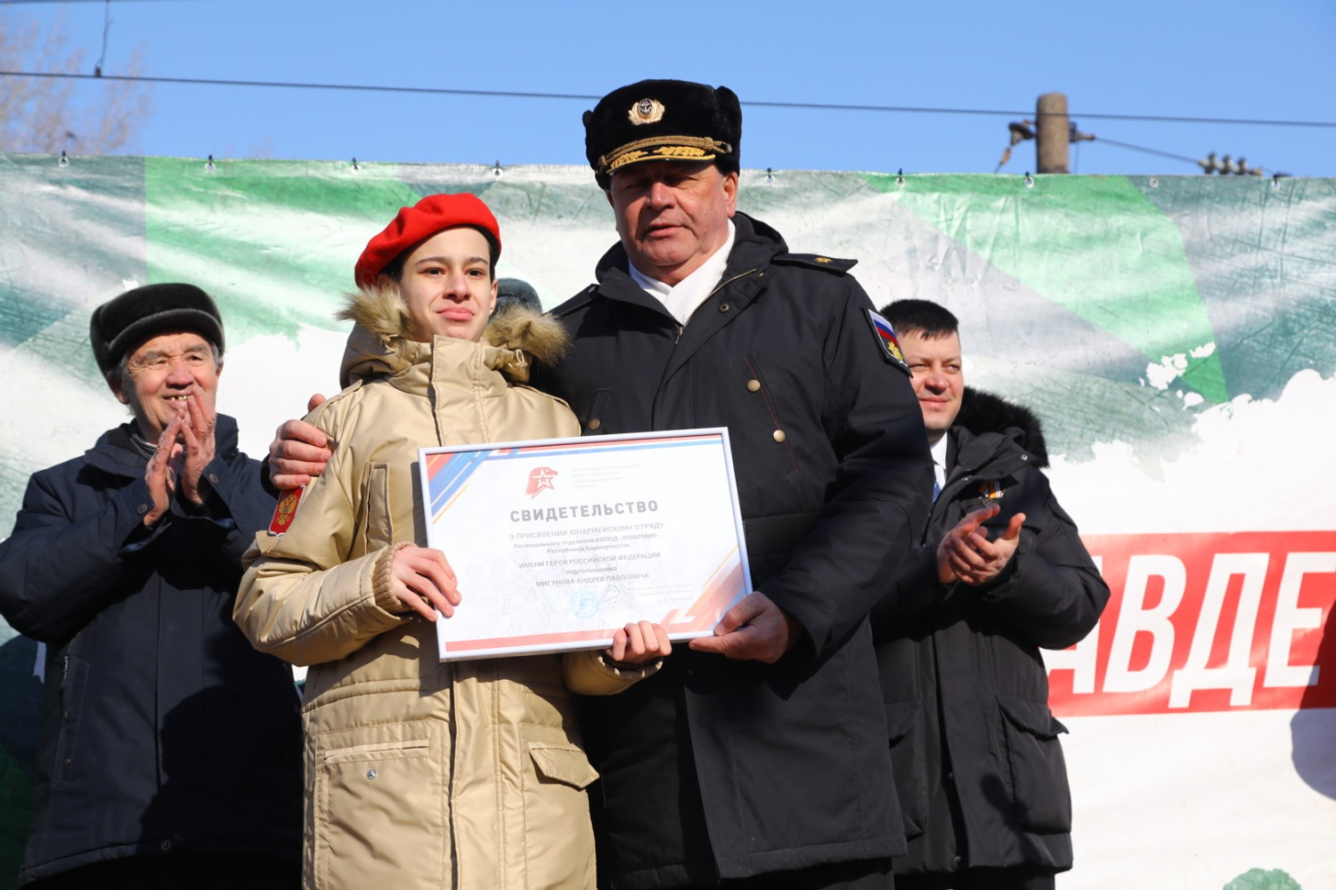 Трем юнармейским отрядам были присвоены имена Героев Российской Федерации — подполковника Андрея Мигунова, прапорщика Тамерлана Ильгамова, старшины Алмаза Сафина.