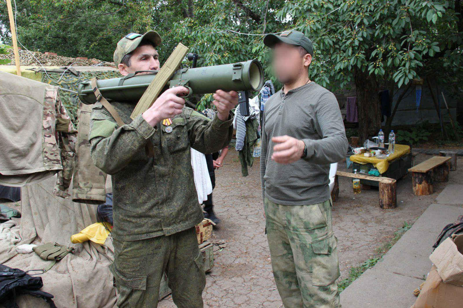 Затем «Махмуд» и «Шарип» начали осматривать гранатомёт. Мужчины проверили оружие, внимательно осмотрели каждую его деталь.