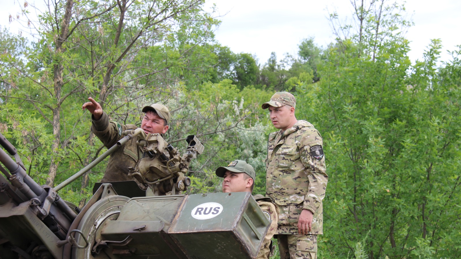 Жаркой погоде высокой температуры добавили отлетающие раскалённые гильзы и снопы огня, вырывающиеся из стволов. Всё это время рядом стоял включенный аппарат радиоэлектронной борьбы. Беспилотник уничтожить не удалось, но он спешно ретировался.