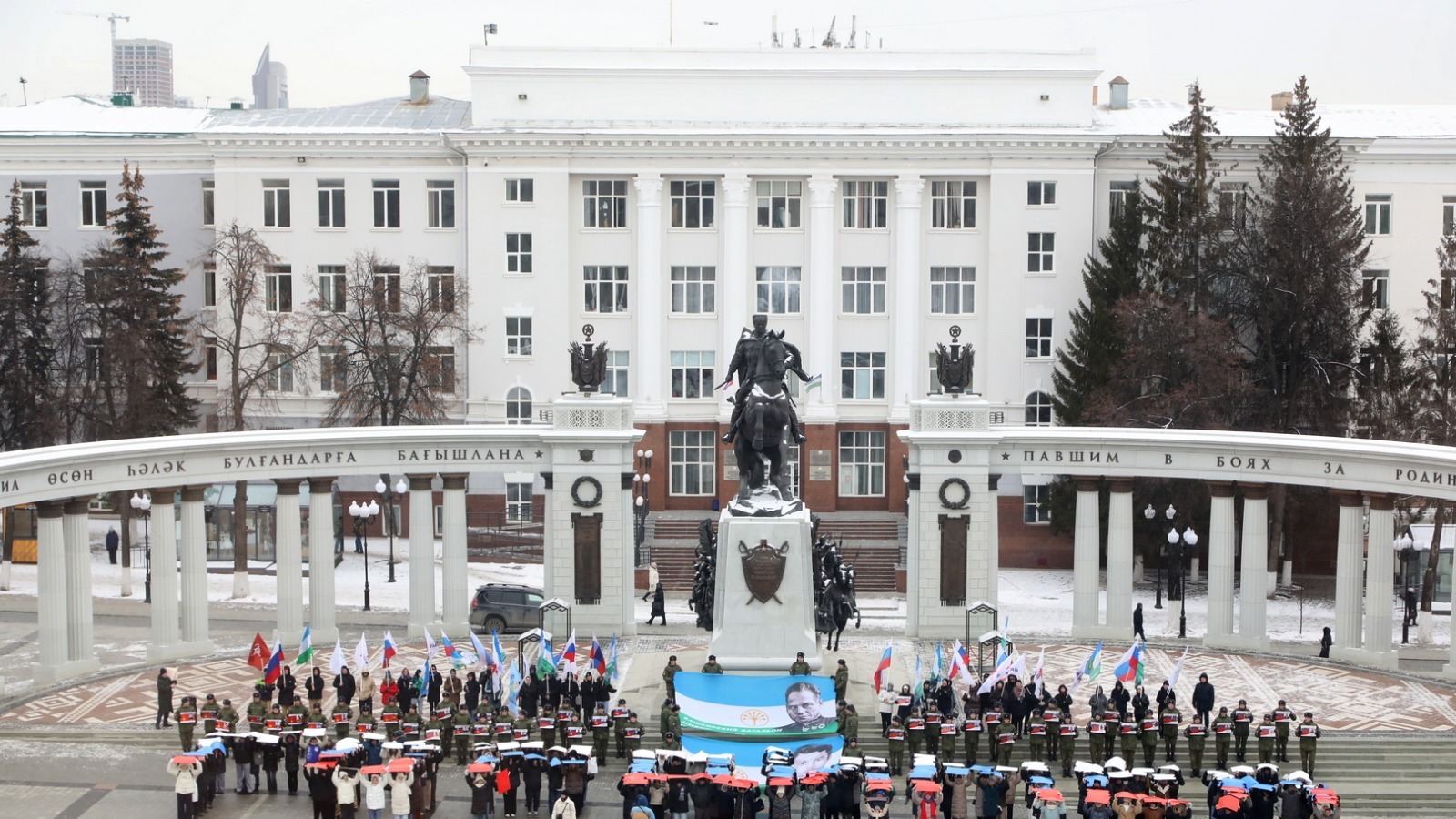 В Уфе на Советской площади собрались более 300 человек, чтобы принять участие в патриотическом флешмобе, посвящённом Дню Героев Отечества. В акции, организованной общественным движением «Алга-Патриот», приняли участие студенты, школьники, общественники, представители Госсобрания.