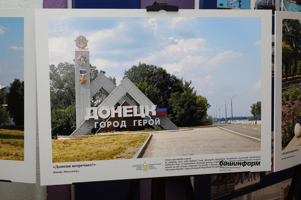 На фотовыставке представлены 40 работ, сделанных в Мелитополе, Донецке, Мариуполе и других населённых пунктах Донецкой Народной и Луганской Народной республик.