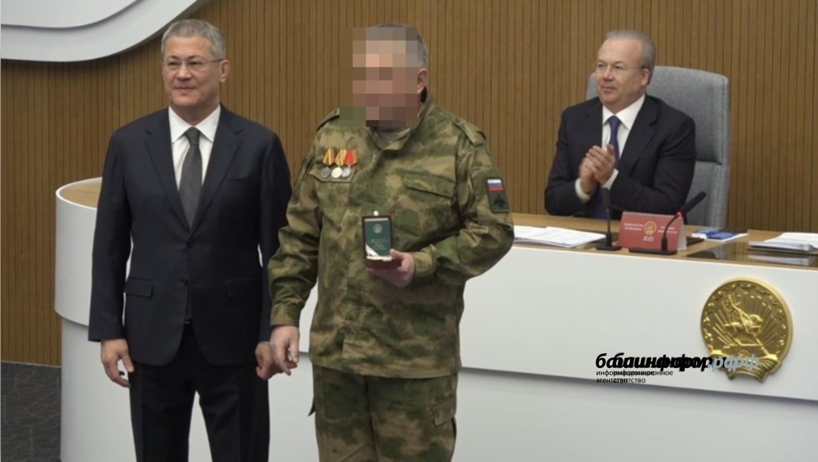 - Те ребята, которые выполняют свой воинский долг, - самые главные для нас люди, вся республика вас поддерживает. Передайте вашим сослуживцам слова глубочайшего уважения и благодарности за вашу службу, - сказал Глава Башкортостана Радий Хабиров, вручая награду.