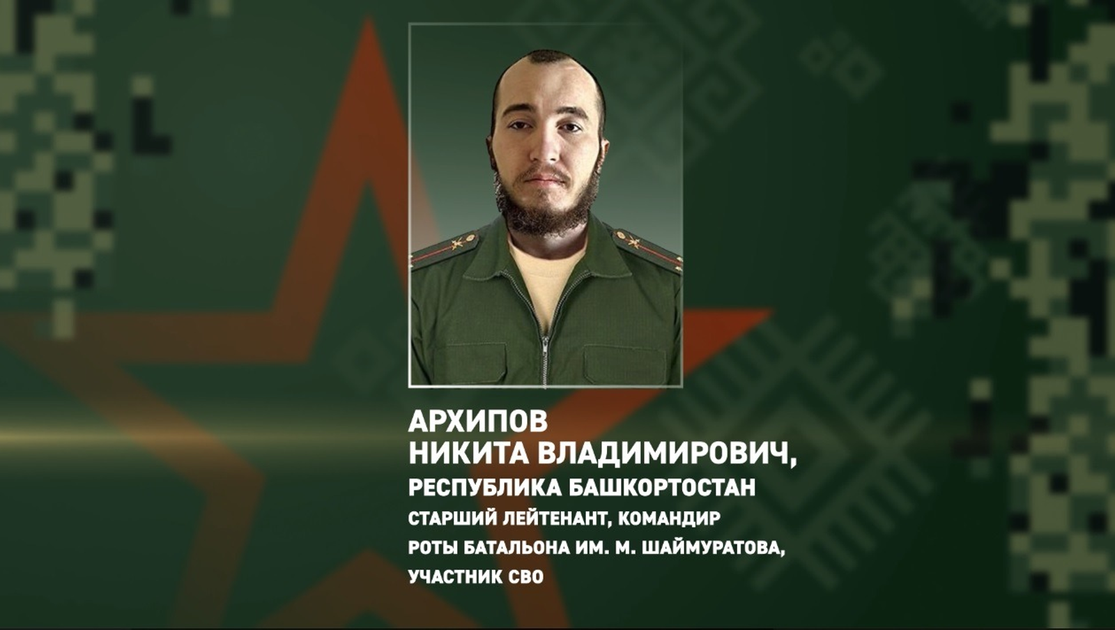 Старший лейтенант Архипов командует ротой башкирского батальона имени Минигали Шаймуратова. За время службы на фронте показал себя как ответственный командир и отважный боец.