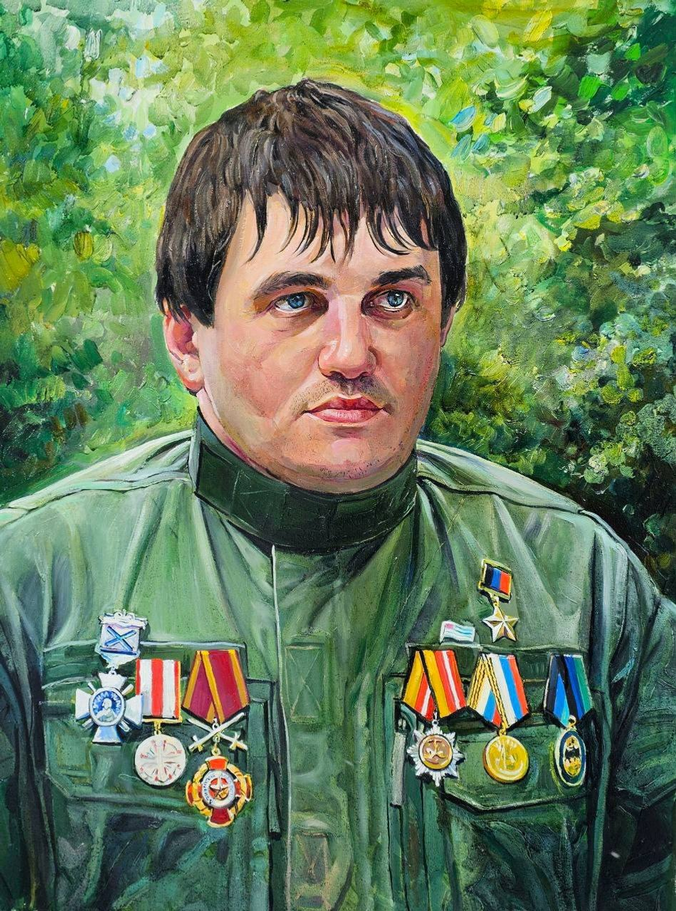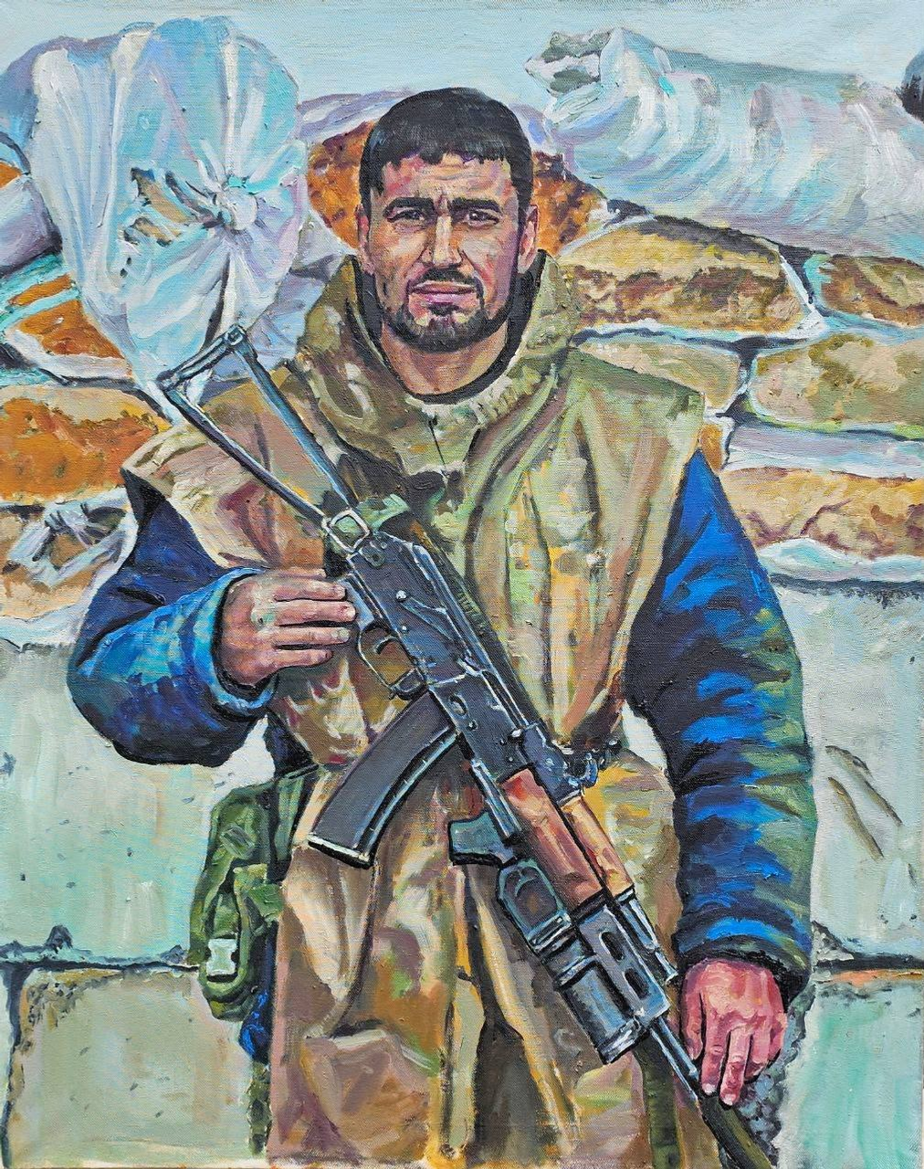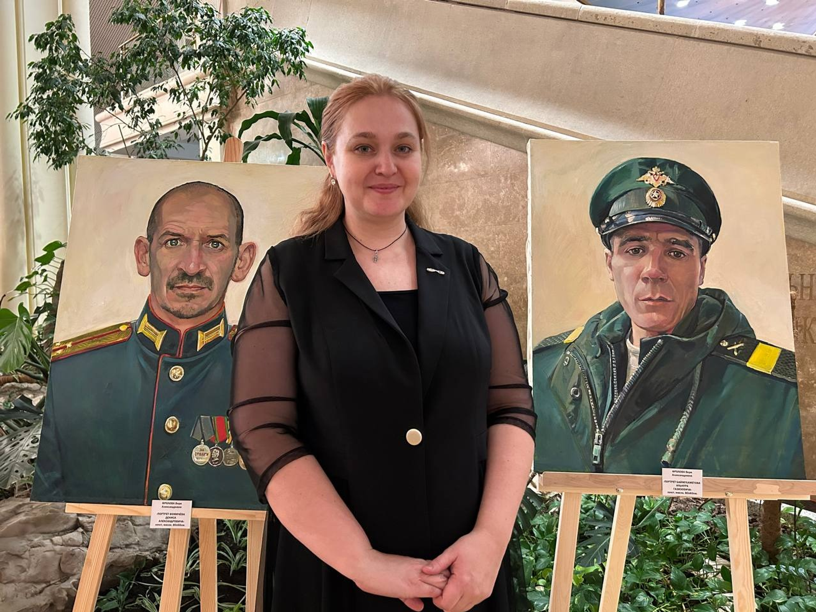 На нескольких представленных полотнах изображены участники спецоперации из Башкирии Денис Фомичёв и Ильнур Баймухаметов, павшие при выполнении боевых задач.