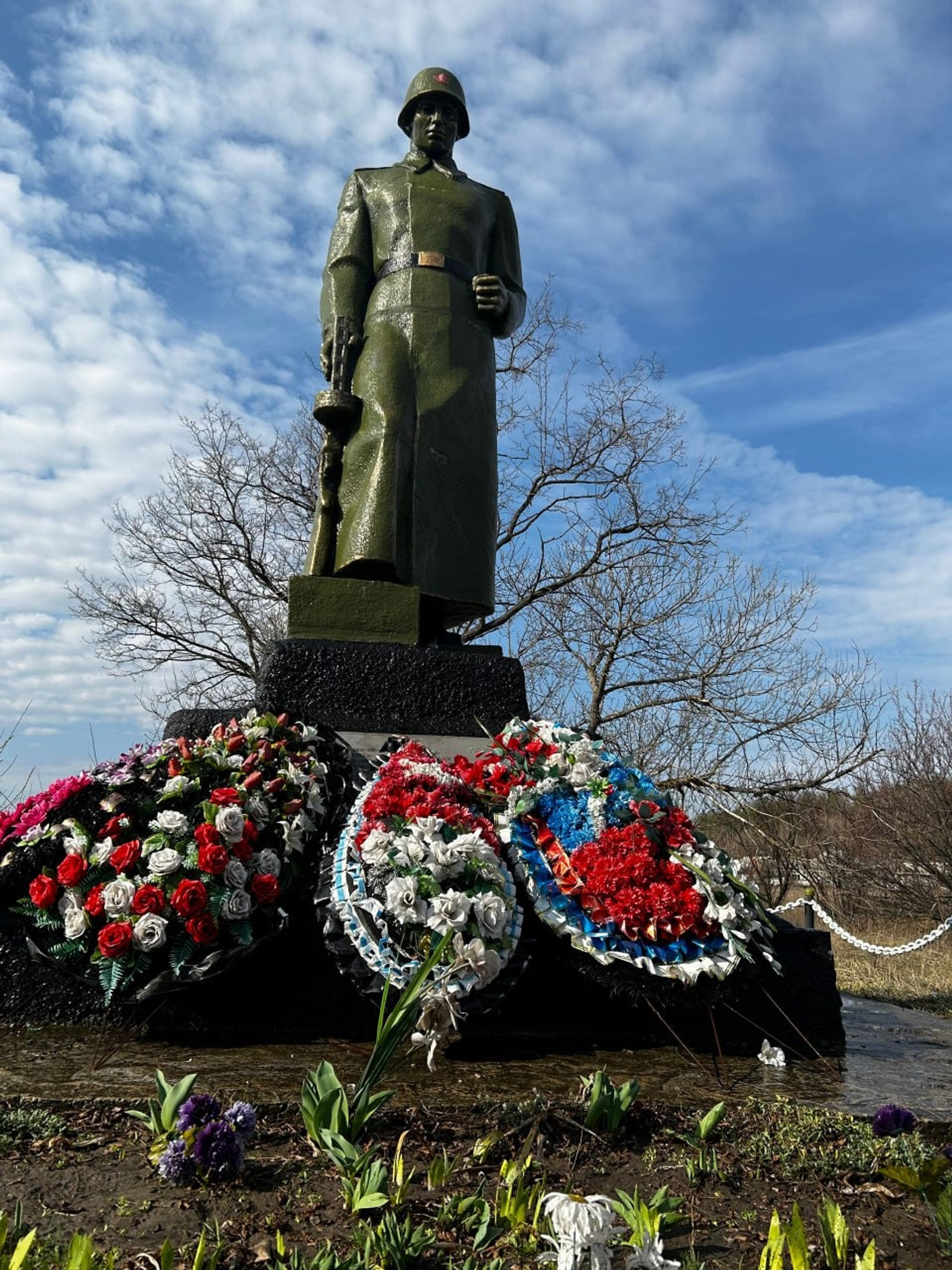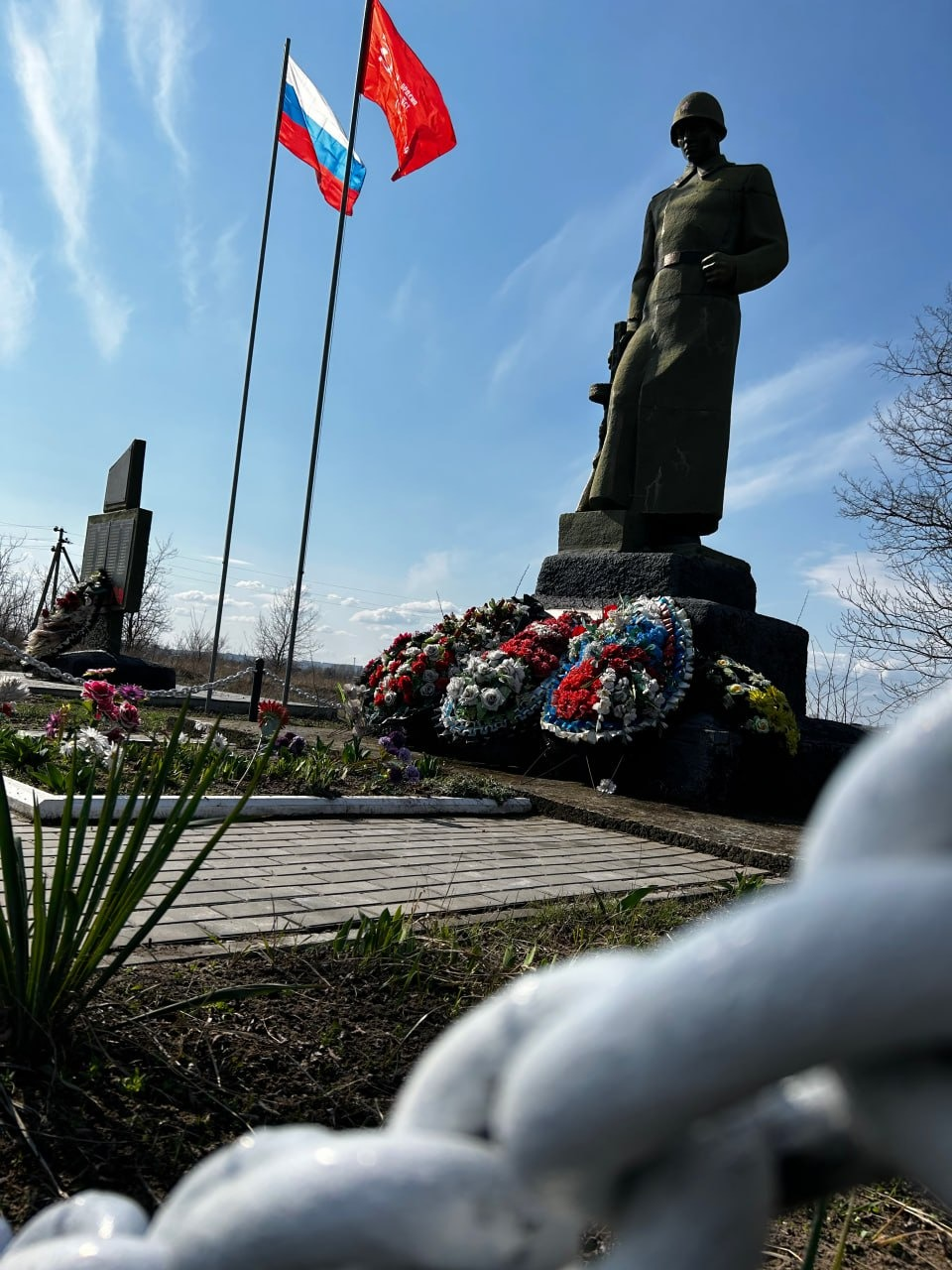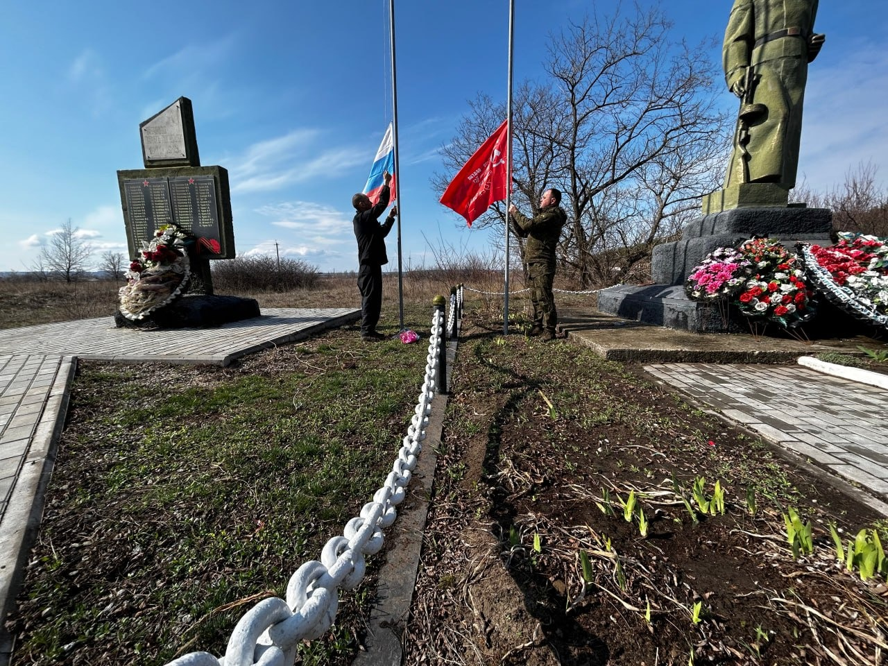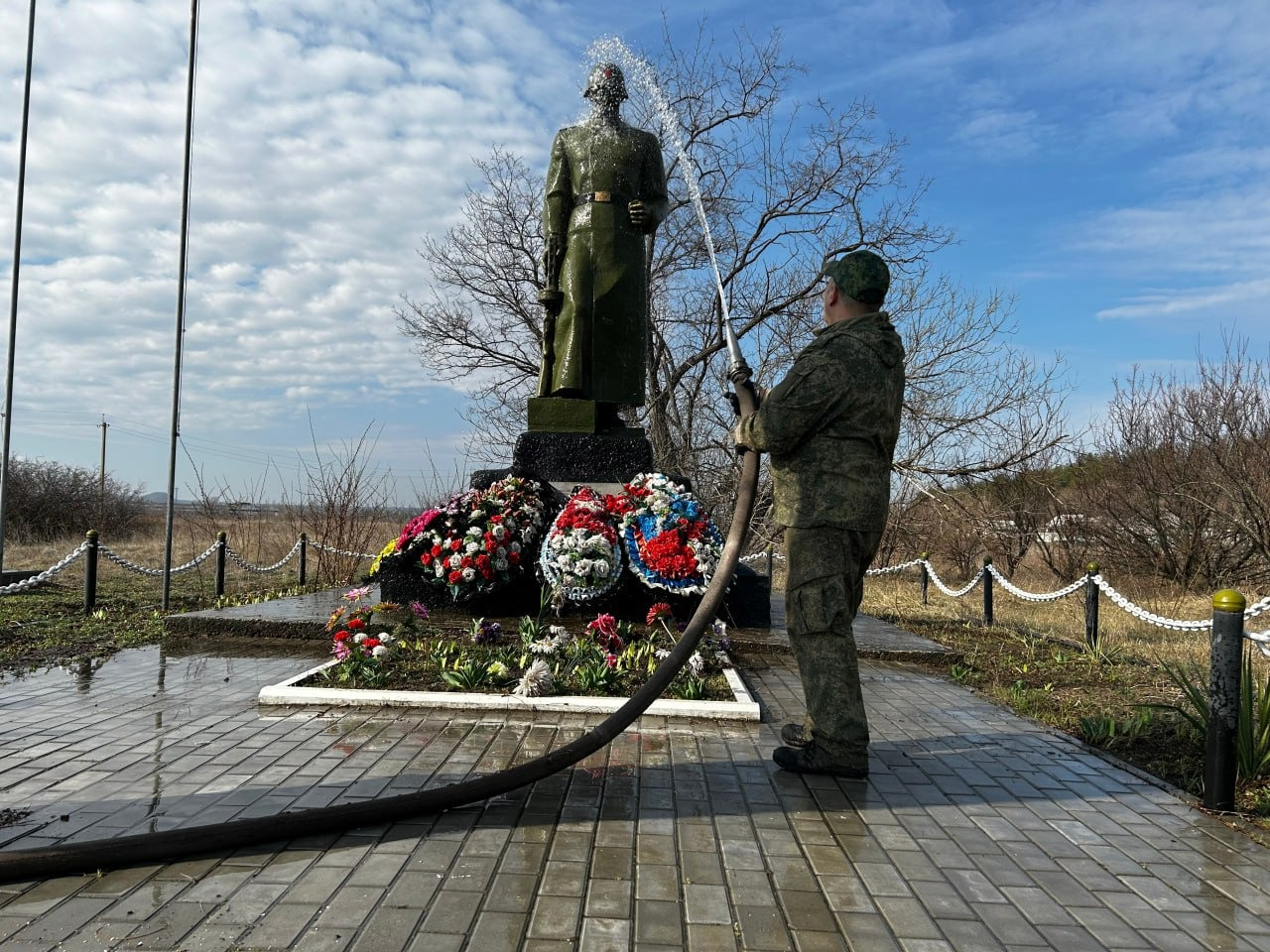 «В преддверии Дня Победы они провели субботник. Памятник очистили от пыли, полили цветы, покрасили стволы деревьев, обновили знамя Победы и государственный флаг России», — написал «Журналист».