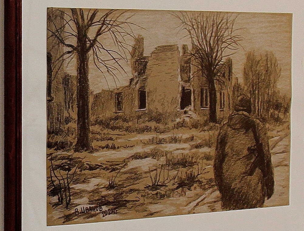 Работы, выполненные в графике, освещают тему специальной военной операции, в зоне которой отец Виктор как войсковой священник находится с 2022 года.