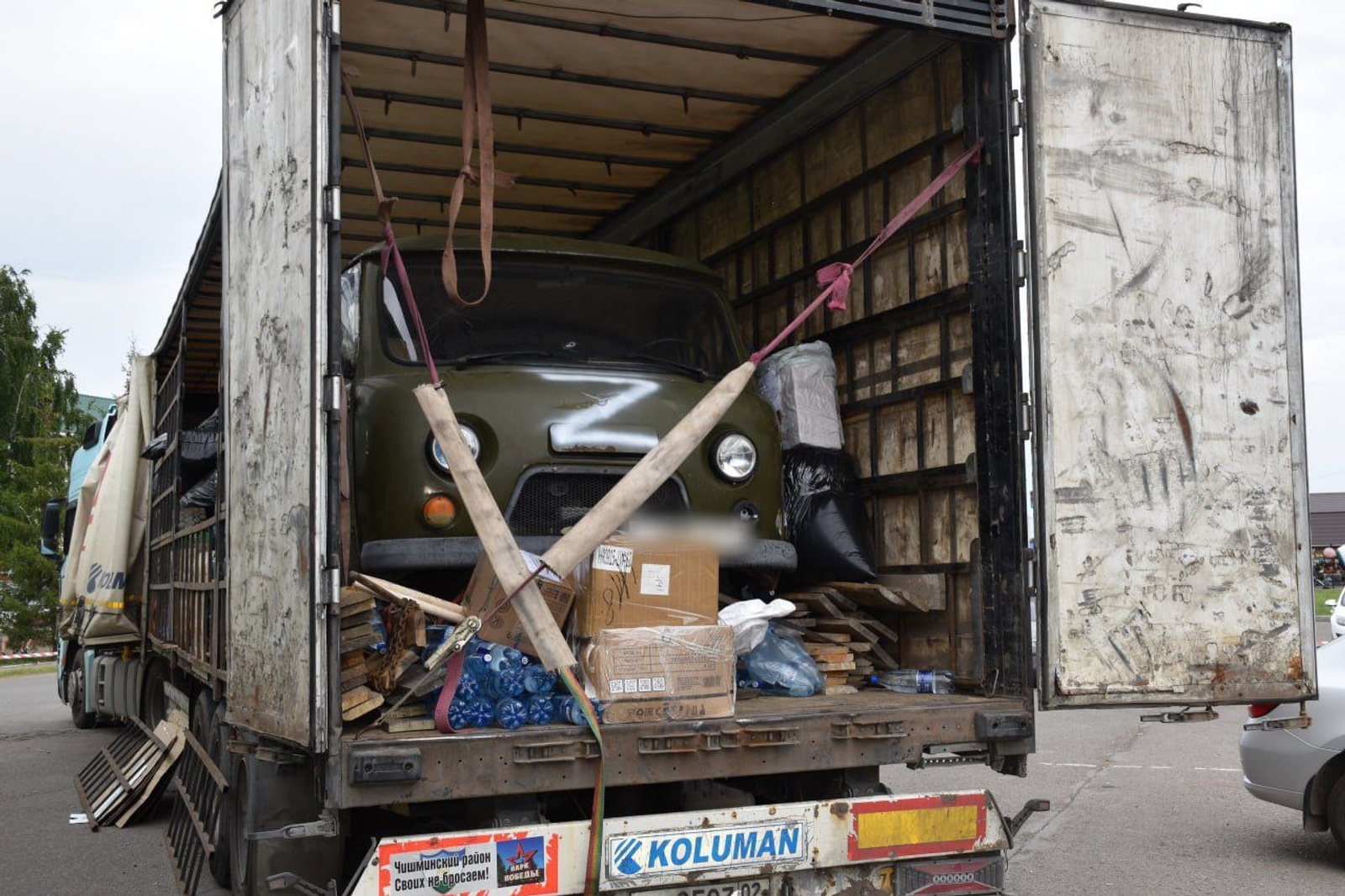 По информации администрации Дуванского района, колонна везёт военнослужащим на фронт пиломатериалы, автомобили ВАЗ-2107 и УАЗ, маскировочные сети, антидроновые одеяла, продукты, питьевую воду, личные посылки.