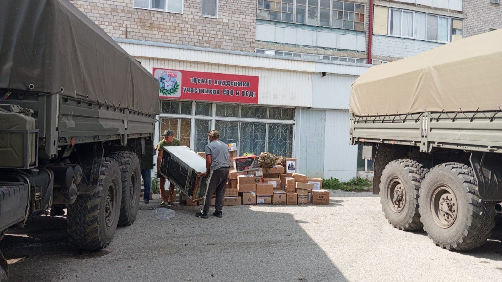 Гуманитарный конвой организован членами местного отделения «Боевого братства». Они загрузили грузовики сорока колёсами для автомобилей «Урал» и «КамАЗ», предоставленными жителем города Салихьяном Хайсаровым и местной строительной организацией.