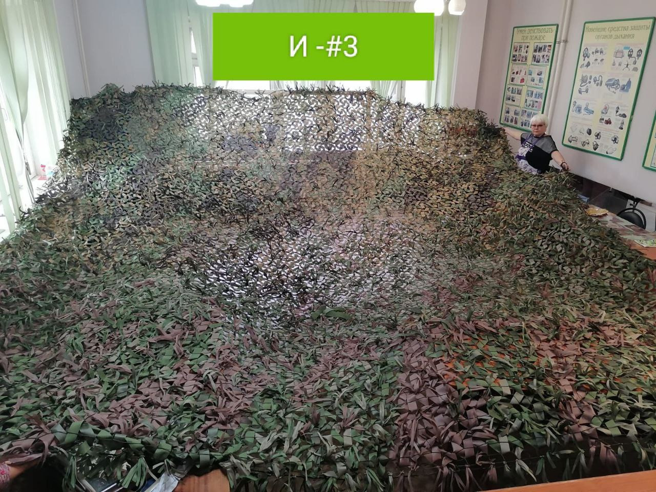 «В своем производстве мы используем два основных материала, - поясняет Зиля Фаттахова. - В качестве основы идет капроновая нить, которая не провисает и не растягивается. Маскировочным элементом служит материал спанбонд, который не намокает, не выцветает на солнце и имеет множество цветовых оттенков. Он также почти не проводит тепло, что очень важно для защиты от обнаружения тепловизором. Все материалы мы закупаем в рулонах и нарезаем по нужным размерам. Плетение не должно давать правильных линий, а используемые цвета быть однотонными, ведь в природе таких сочетаний просто не существует. Очень важное значение имеет правильный выбор цветов материала, в этом вопросе мы постоянно советуемся с бойцами. К примеру, в Запорожье летом преобладает желтый цвет местности, а зеленая сеть будет только выдавать укрытый объект. Фронтовики присылают нам фото окружающего ландшафта. Это позволяет подобрать наиболее подходящий цвет материала и добиться максимального эффекта от маскировки».