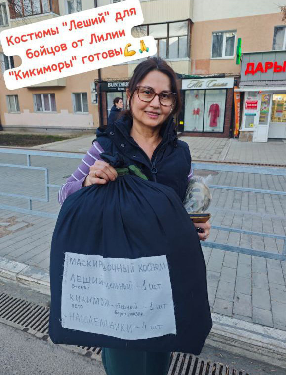 Важным успехом волонтеров стало налаживание производства костюмов для снайперов типа «леший» и «кикимора», не уступающих по своим свойствам продукции лучших мировых брендов. Эту работу организовала дочь и мать военнослужащих Лилия Подчиварова, отправившая фронтовикам уже более 350 таких изделий.