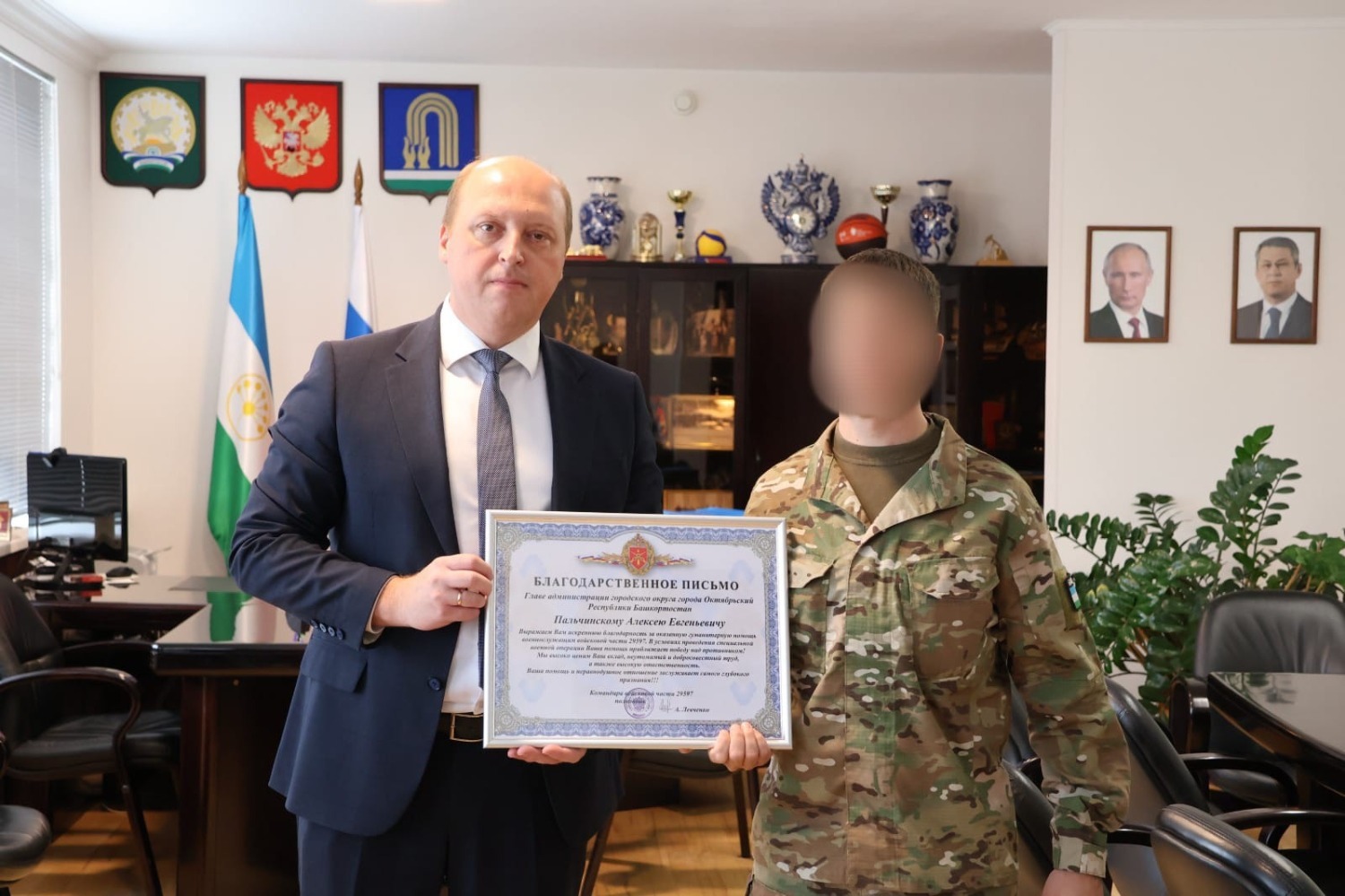 «Артист» привез от командования своей войсковой части благодарственное письмо за помощь, отправленную городом.