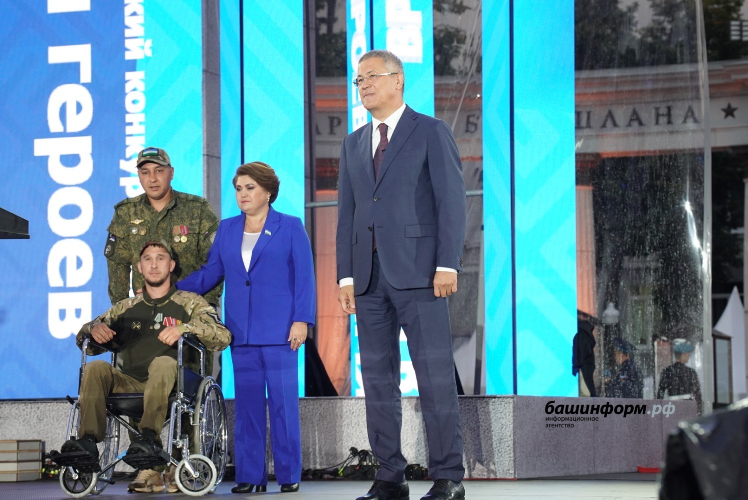 Радий Хабиров наградил обладателя Гран-при конкурса патриотической песни «Время героев». Ею стала Лидия Трифонова с песней «Победа впереди».