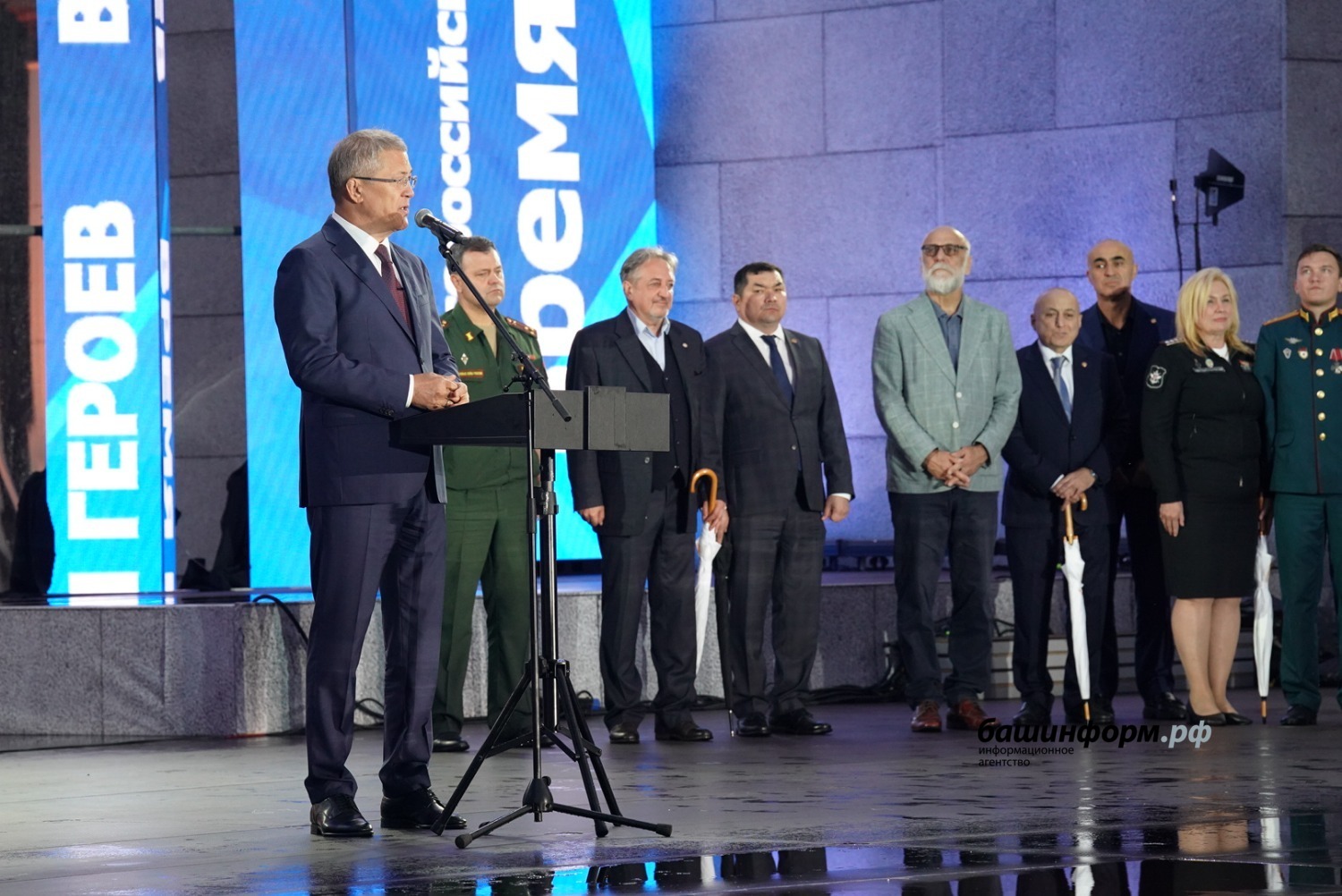 «Сегодня, 27 августа, 126 лет со дня рождения Героя России, генерала Шаймуратова. И здесь сегодня проходят завершающие мероприятия Дней армейской культуры. Мы сегодня склоняем головы перед величием и памятью наших героев. Героев Великой Отечественной войны, 112-й Башкирской кавалерийской дивизии, а здесь, на площади сегодня находится уже новое поколение героев – участники специальной военной операции, члены их семей, родные и близкие. Обращаясь к участникам специальной военной операции, вновь говорю, что мы преклоняемся перед вами, гордимся вами и бесконечно вас уважаем. И мы сделаем всё, чтобы ваша служба была легче, чтобы вы все вернулись домой живыми и невредимыми. Обращаясь к членам семей наших воинов, которые сложили головы в защите Отечества, хочу сказать, что мы их будем всегда помнить и будем заботиться о семьях, жёнах и детях погибших героев», – сказал Радий Хабиров и попросил почтить память героев, погибших в боях за Родину, минутой молчания.
