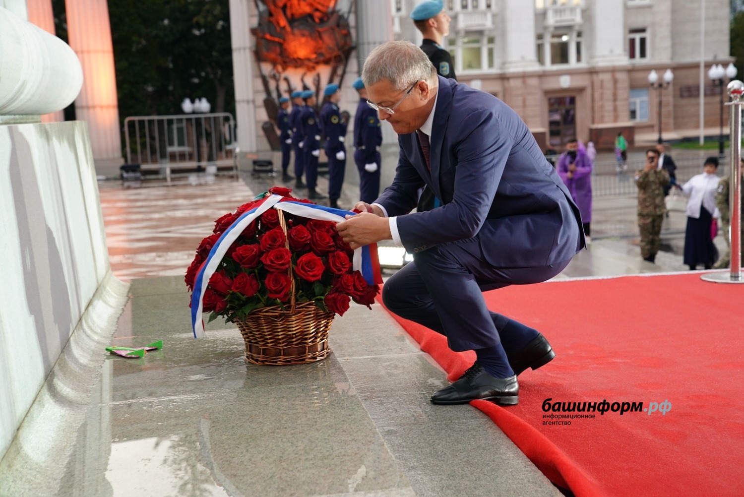Перед началом гала-концерта Глава Башкортостана Радий Хабиров и почетные гости возложили цветы к памятнику Герою России, легендарному комдиву Минигали Шаймуратову.