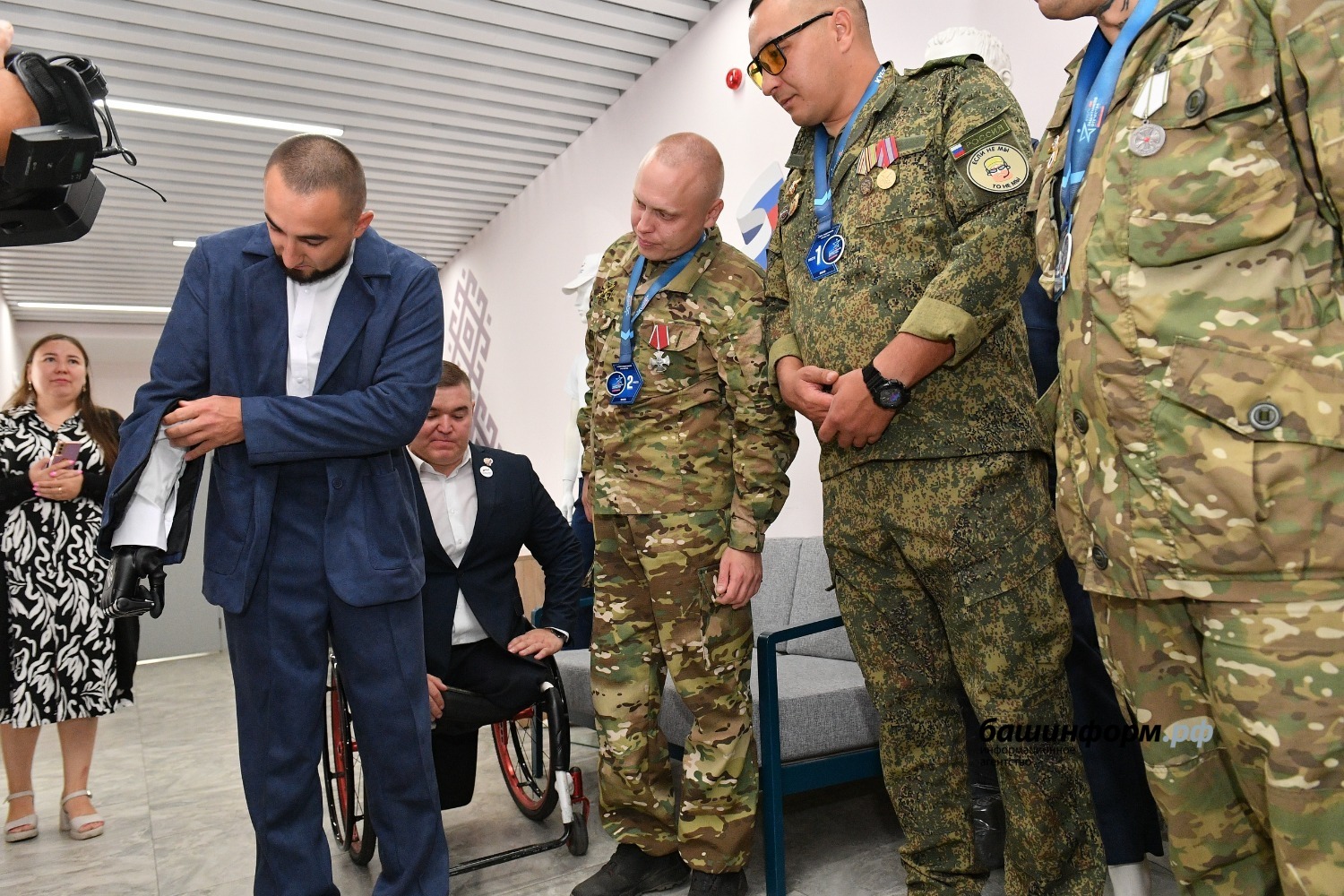 После вручения комплектов ветераны спецоперации, члены сборной ветеранов Башкортостана по адаптивным видам спорта и участники «Кубка Защитников Отечества», провели показ адаптивной одежды. Артем Мухарямов прошел по импровизированному подиуму в деловом костюме, Олег Муфтахутдинов — в спортивной форме, а Радик Юсупов примерил толстовку и адаптивный мешок для ног. Все это очень пригодится ребятам как в повседневной жизни, так и при занятиях адаптивным спортом.