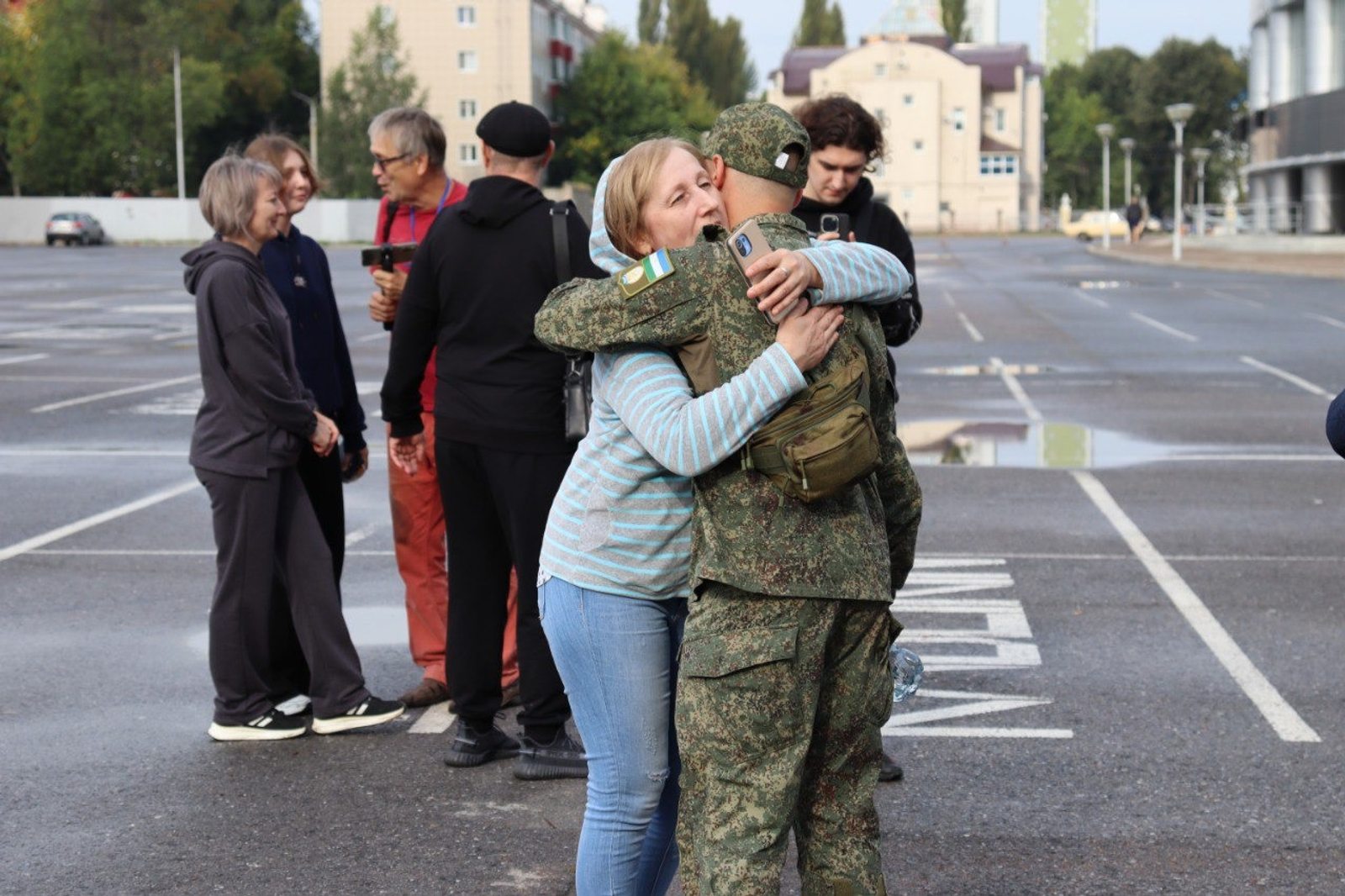 Бойцов, побывавших дома в краткосрочном отпуске, проводили вице-премьер правительства Башкирии Ирек Сагитов, заместитель главы администрации Советского района Султан Бадыков, военный комиссар Дёмского района Уфы и Уфимского района подполковник Эрнест Кабиров, родные и близкие воинов.