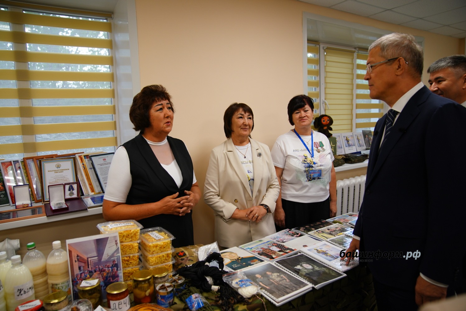 Сегодня в рамках рабочей поездки по Баймакскому району Глава Башкортостана Радий Хабиров посетил центр поддержки участников специальной военной операции и членов их семей, где располагаются волонтерский центр «Ангел-хранитель» и местный филиал госфонда «Защитники Отечества».
