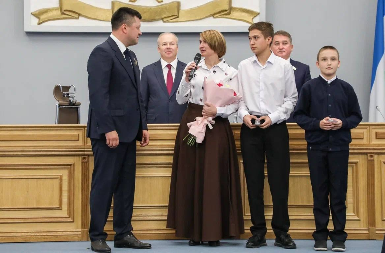 В преддверии Дня Республики в Уфе впервые вручили 18 именных значков «Моя мама — Герой» детям, чьи матери участвуют в специальной военной операции.