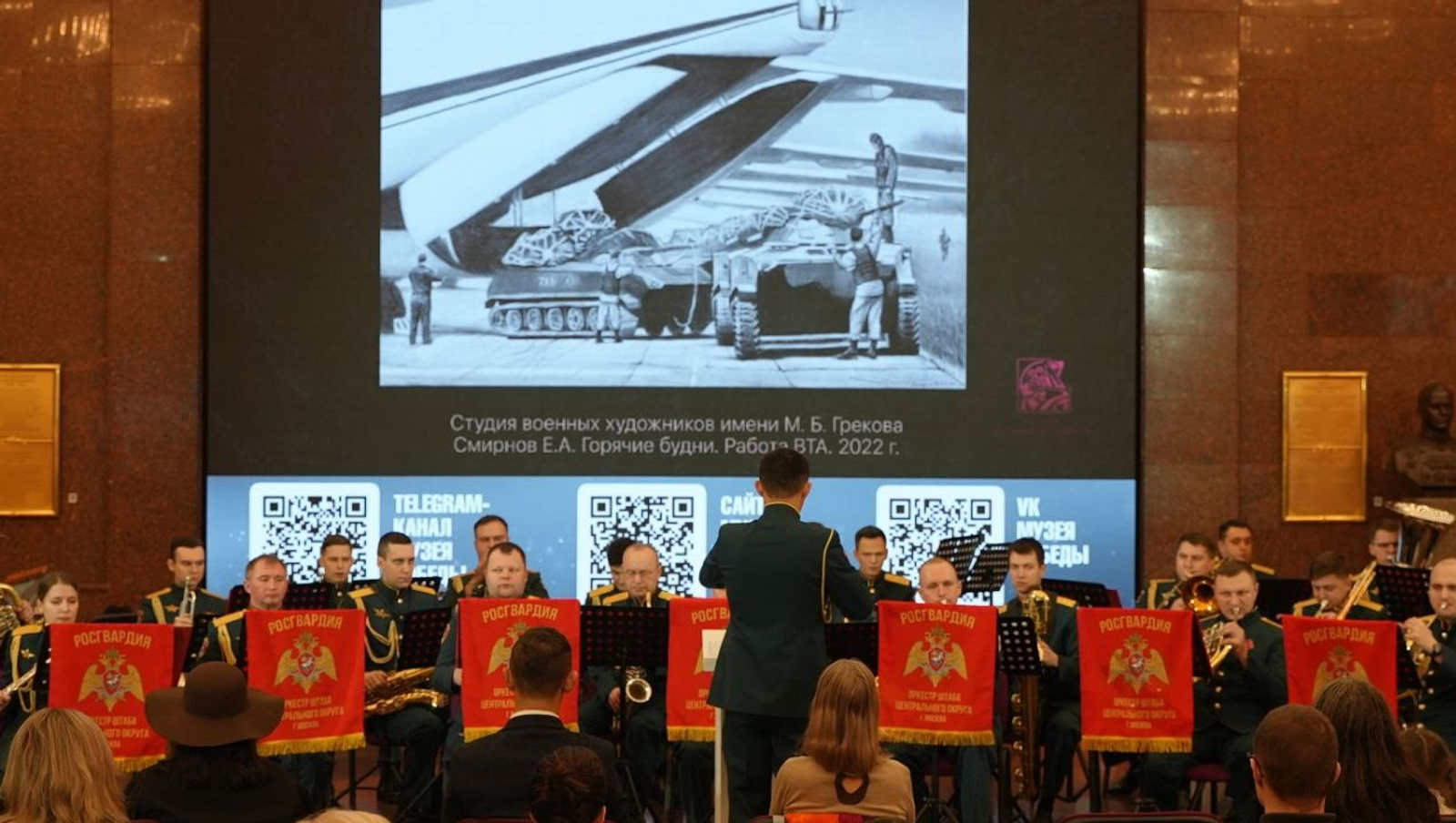 Динамичный видеоряд, в основе которого лежат батальные полотна художников-грековцев, написанные в 2024–2025 годах по горячим следам событий, создал эффект полного погружения.