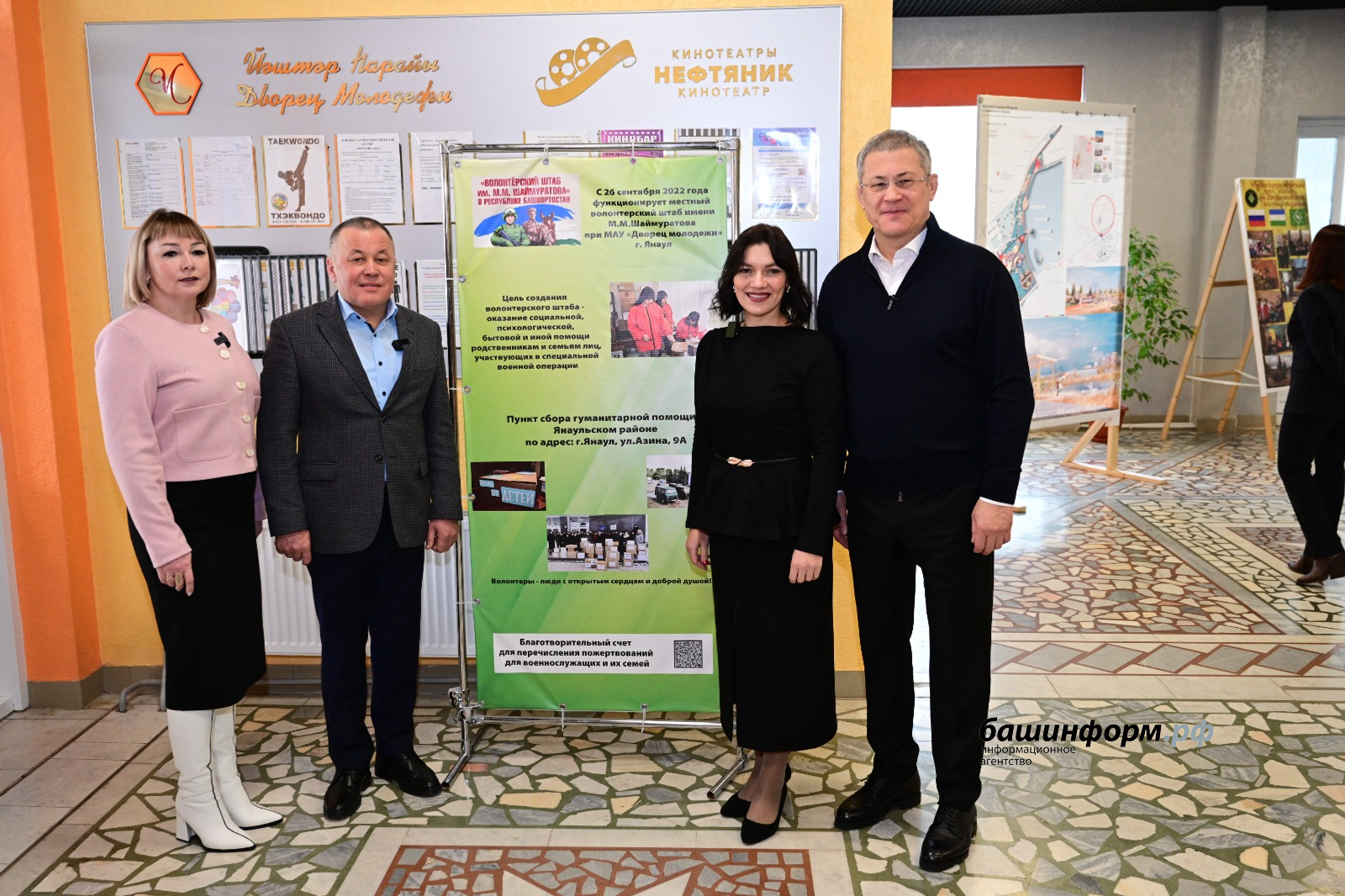 Сегодня в Янауле Радий Хабиров ознакомился с выставкой «Любовь длиною в жизнь», которую организовала в фойе Дворца молодёжи супруга военнослужащего Арина Шибанова. Руководитель региона также пообщался волонтерами и школьниками, которые участвуют в сборе гуманитарной помощи для нужд специальной военной операции. Они представили продукцию, которую изготавливают своими руками для бойцов, и презентовали стенд «Наши земляки — Герои России», где расположен баннер с фотографиями и биографиями Игоря Насибуллина и Станислава Большакова. Глава республики отметил важность таких инициатив.