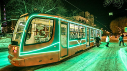 В Уфе к Новому году украсили трамвай и троллейбус