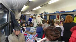 В Башкирии пассажиров электропоезда поздравляли Дед Мороз и Снегурочка