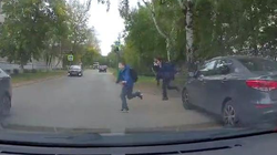 В Уфе трое школьников бросились под колеса иномарки - видео