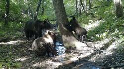 В Башкирии на водопой пришла медведица со своими детенышами