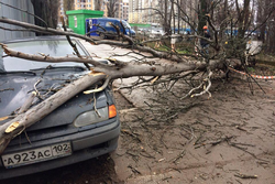 В Башкирии на припаркованный автомобиль рухнуло дерево