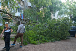 В Кировском районе Уфы шквалистый ветер повалил деревья и сорвал покрытие газона