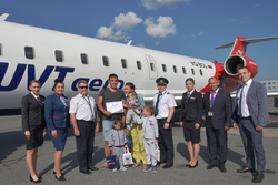В аэропорту «Уфа» 2,5-миллионного пассажира встретили водяной аркой и подарками