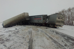 В Башкирии на М7 столкнулись фуры, движение перекрыто
