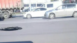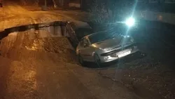В Уфе из-за провала грунта под землей оказались два автомобиля
