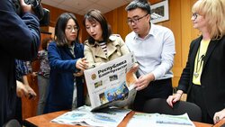 Группа китайских телевизионщиков снимает репортаж об Уфе в рамках формата «Волга-Янцзы»