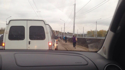 Уфимцы из-за пробки на Затонском мосту отправились на работу пешком