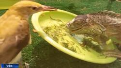 В уфимском зоопарке игуана и иволга едят из одной тарелки - ВИДЕО